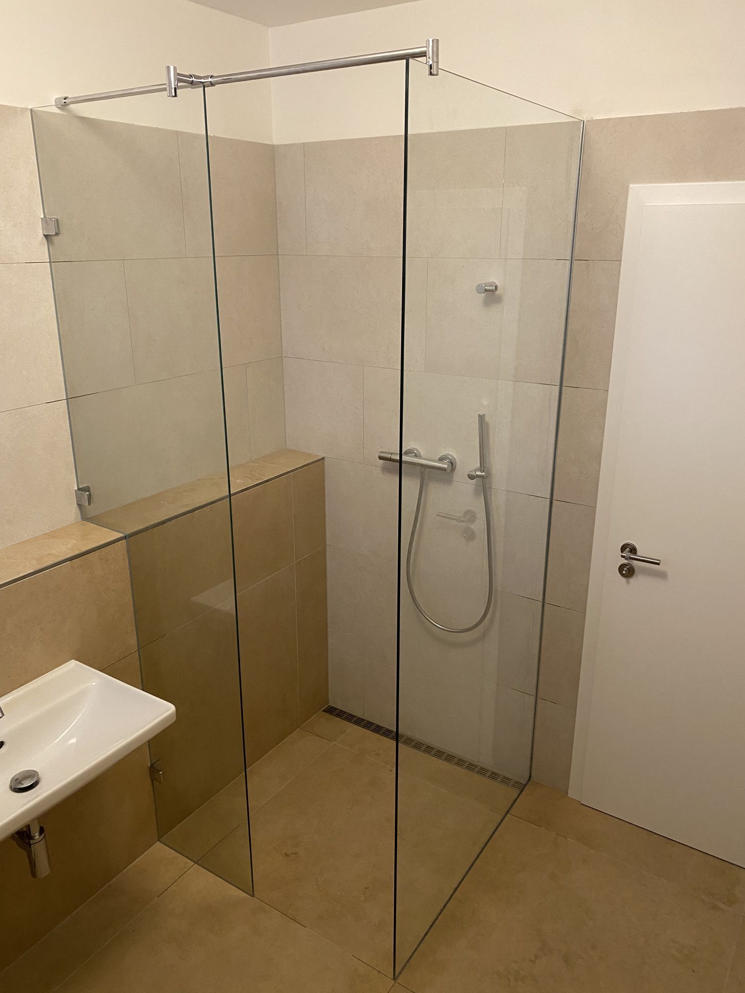 V bytovém domě v Liberci jsme začátkem roku instalovali ve 4 bytech několik typů sprchových zástěn. Dvě Walk-In zástěny a čtyřúhelník s rohovým vstupem. Zajímavým detailem je boční stěna s výřezem kvůli přizdívce. Zástěny jsou doplněny kování EVO a vzpěrami.