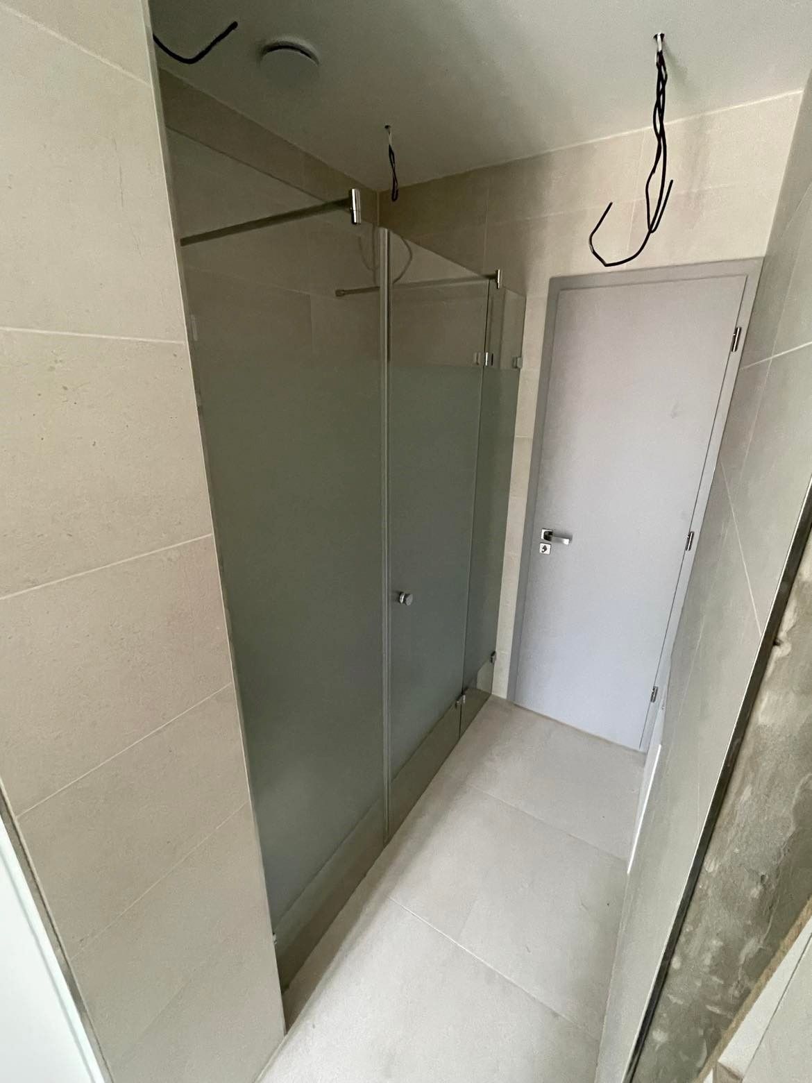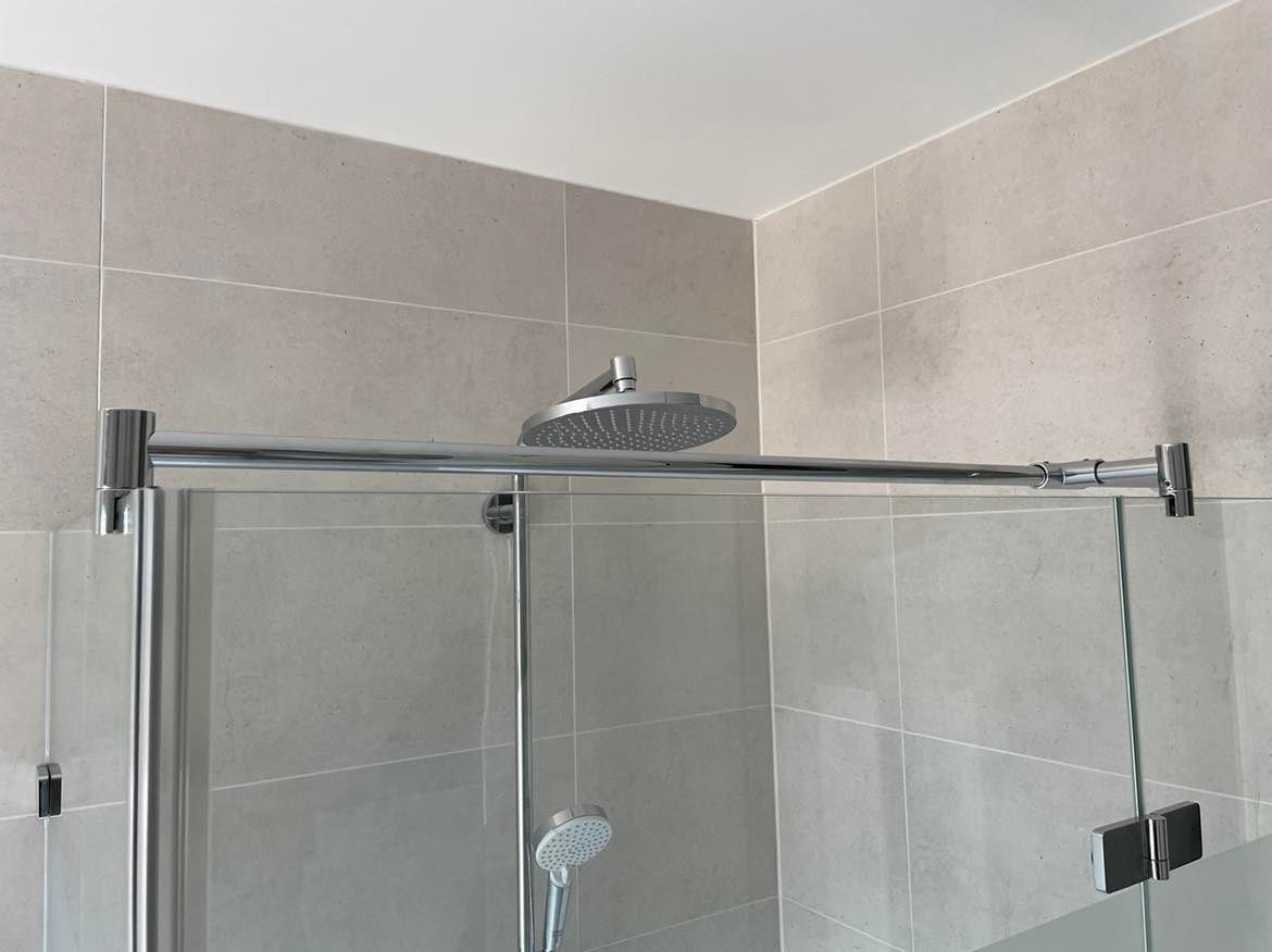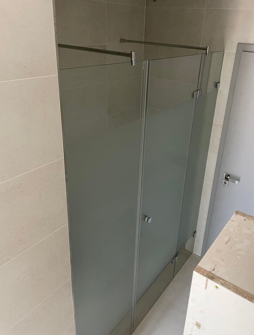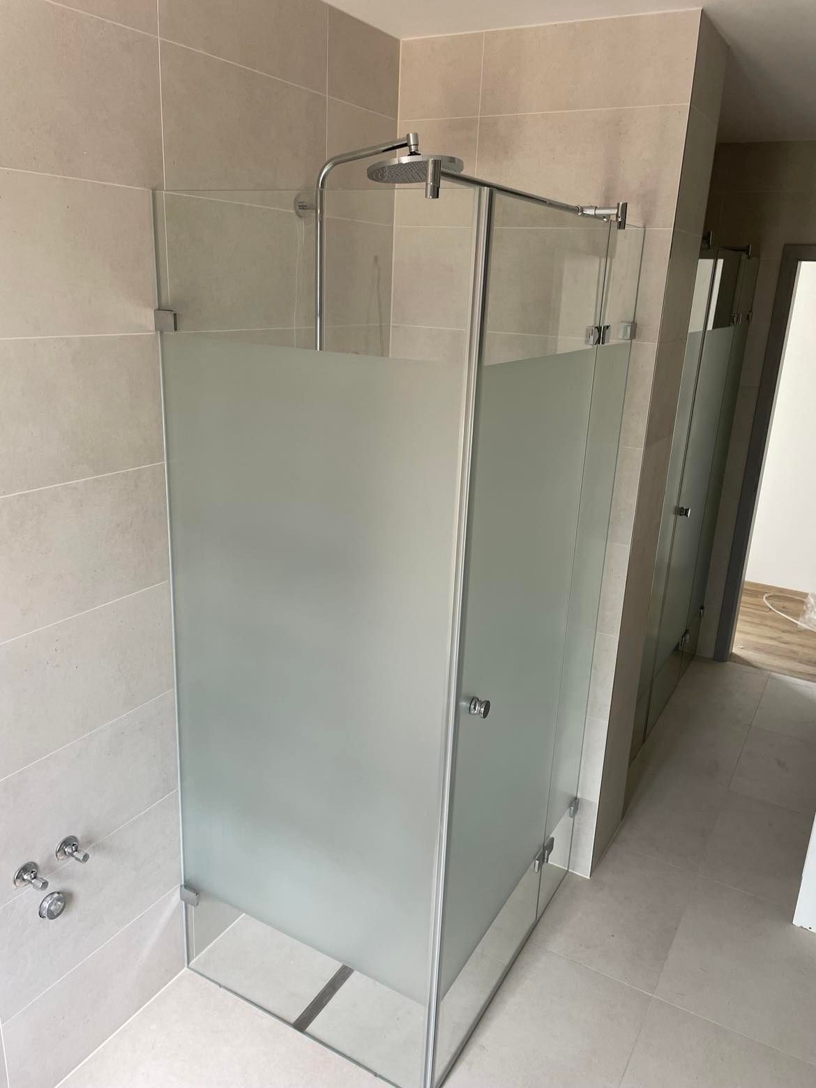 V rodinném době v Roudničce jsme na přání zákazníka instalovali sprchové zástěny do dvou koupelen. Větší z koupelen nabízí rohovou sprchovou zástěnu v modelu 260 s bočním fixním dílem. Stabilita je zajištěna horní stabilizační vzpěrou s T-spojkou. V koupelně je také instalována stěna k WC se stejným designem. Kvůli většímu soukromí zákazníci zvolili skla se sítotiskem. U obou zástěn použito kování EVO.