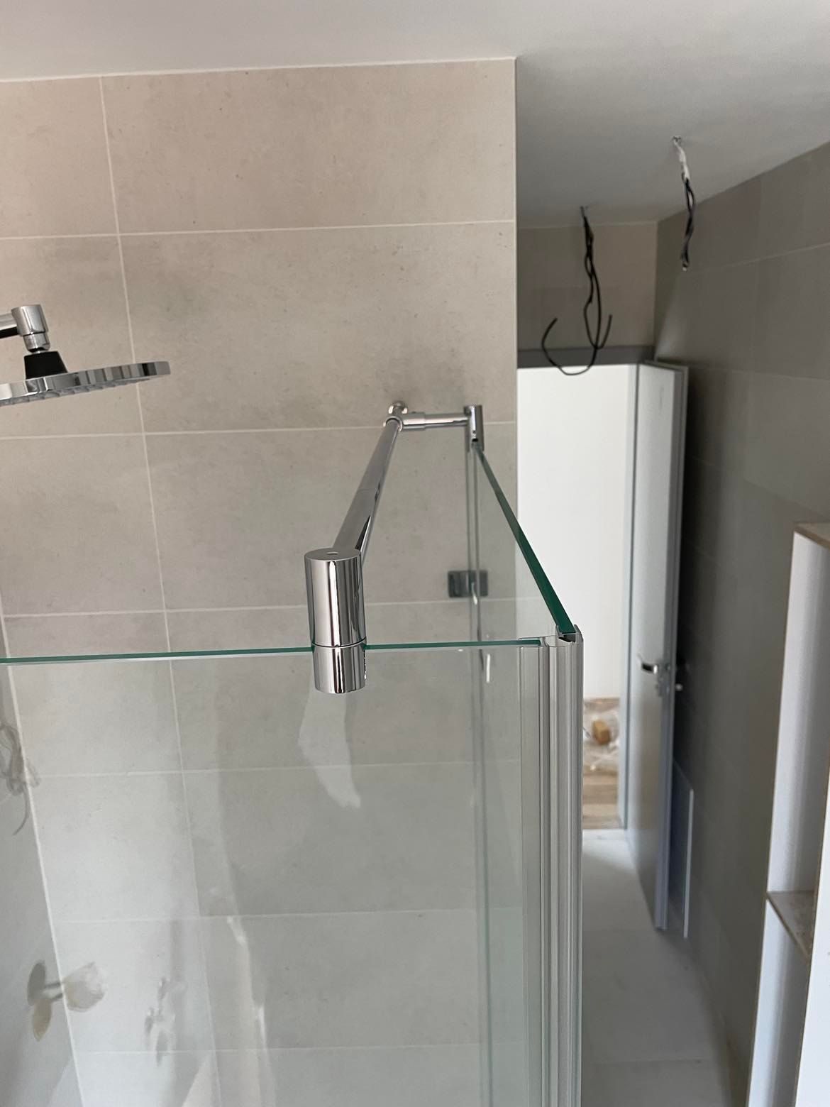 V menší koupelně byla instalována Walk-In zástěna. Kvuůli instalaci na roh přizdívky jsme použili profil u/F 18,5.
