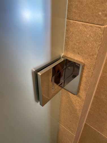 Sprchová zástěna do rohu model 206 je kvůli stabilitě doplněna horní stabilizační vzpěrou. Použito je kování Glares DS15, které umožňuje otevírání dveří oběma směry.