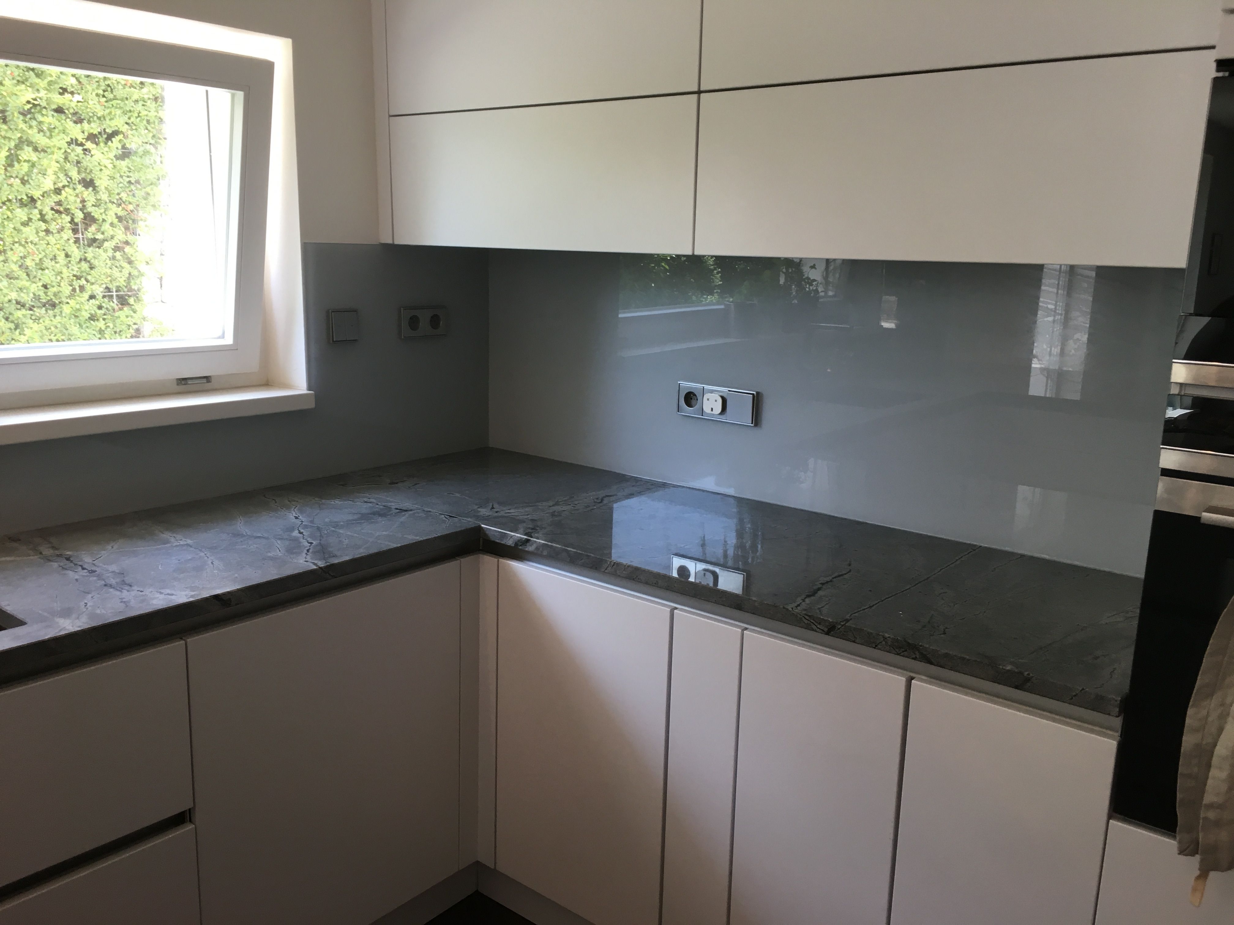 Zákazník z Prahy zvolil kuchyňský obklad v jemném šedém tónu, který výborně doplňuje elegantní vzhled prostoru. Výborná volba!