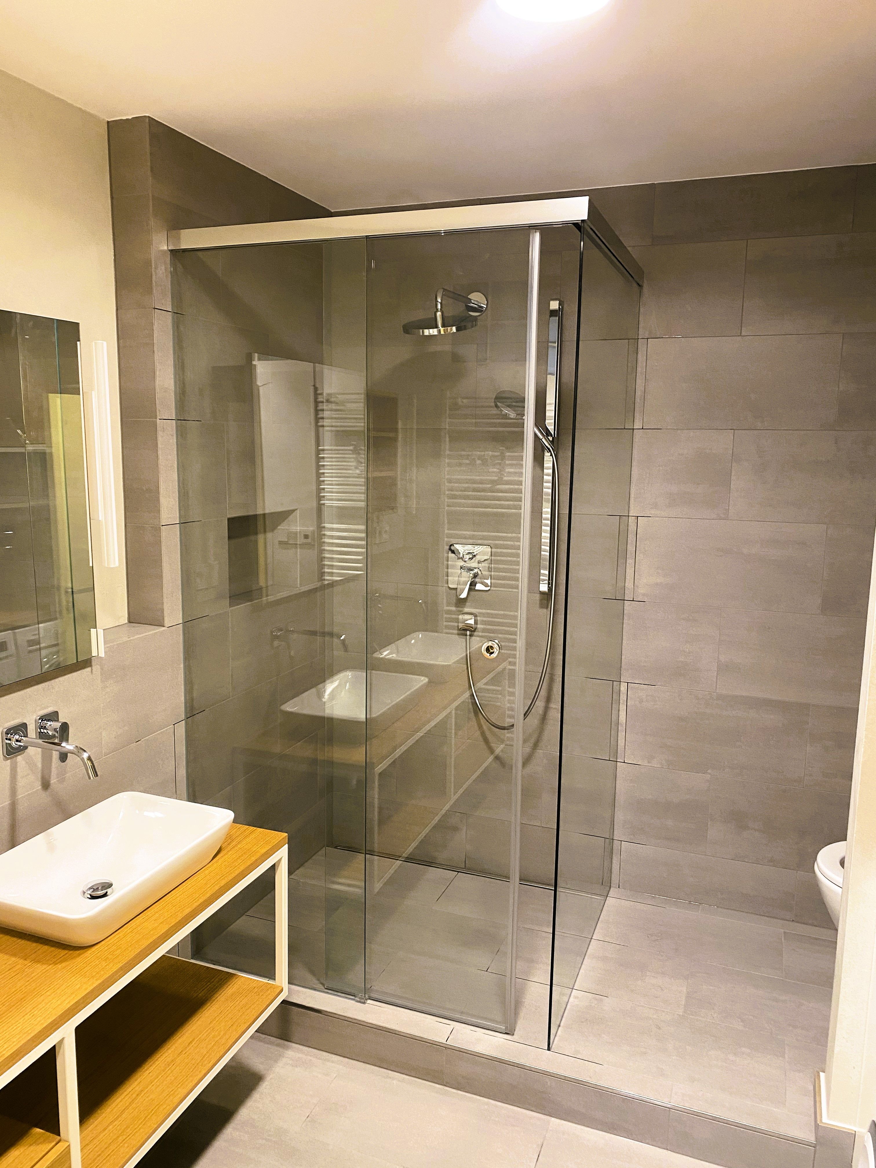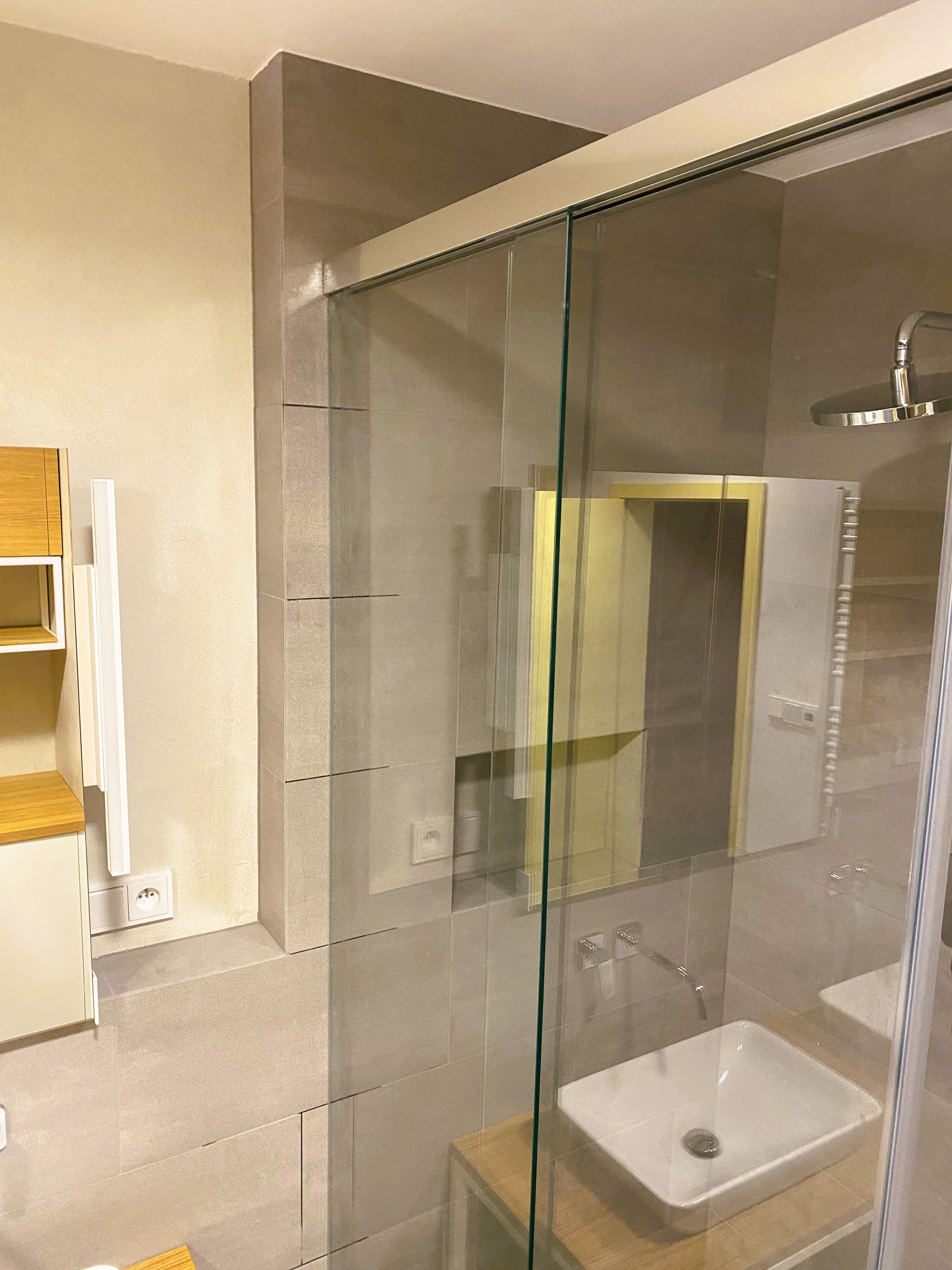 Zákazníci zvolili dvě řešení sprchových zástěn ve variante Softslide - rohová zástěna a zástěna v nice.