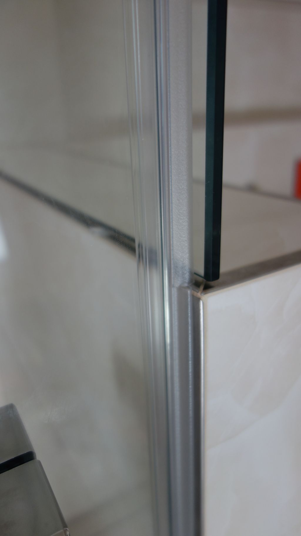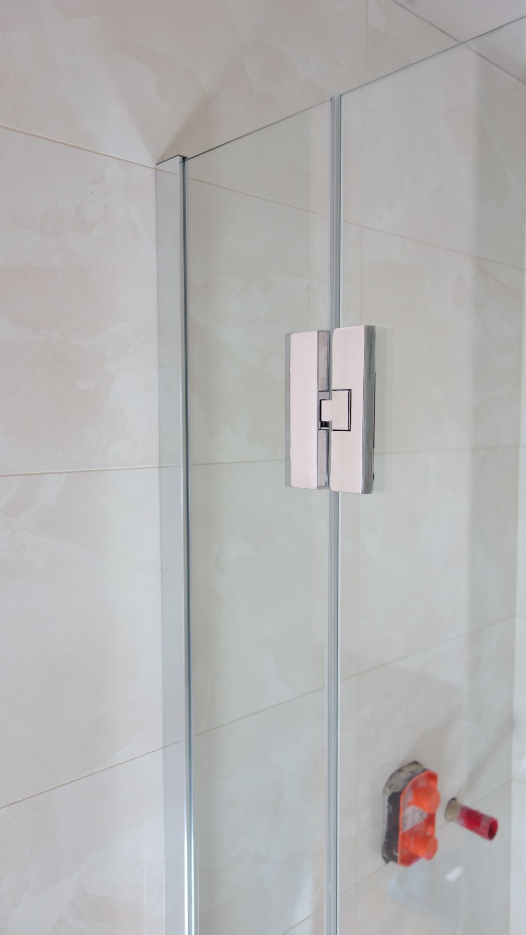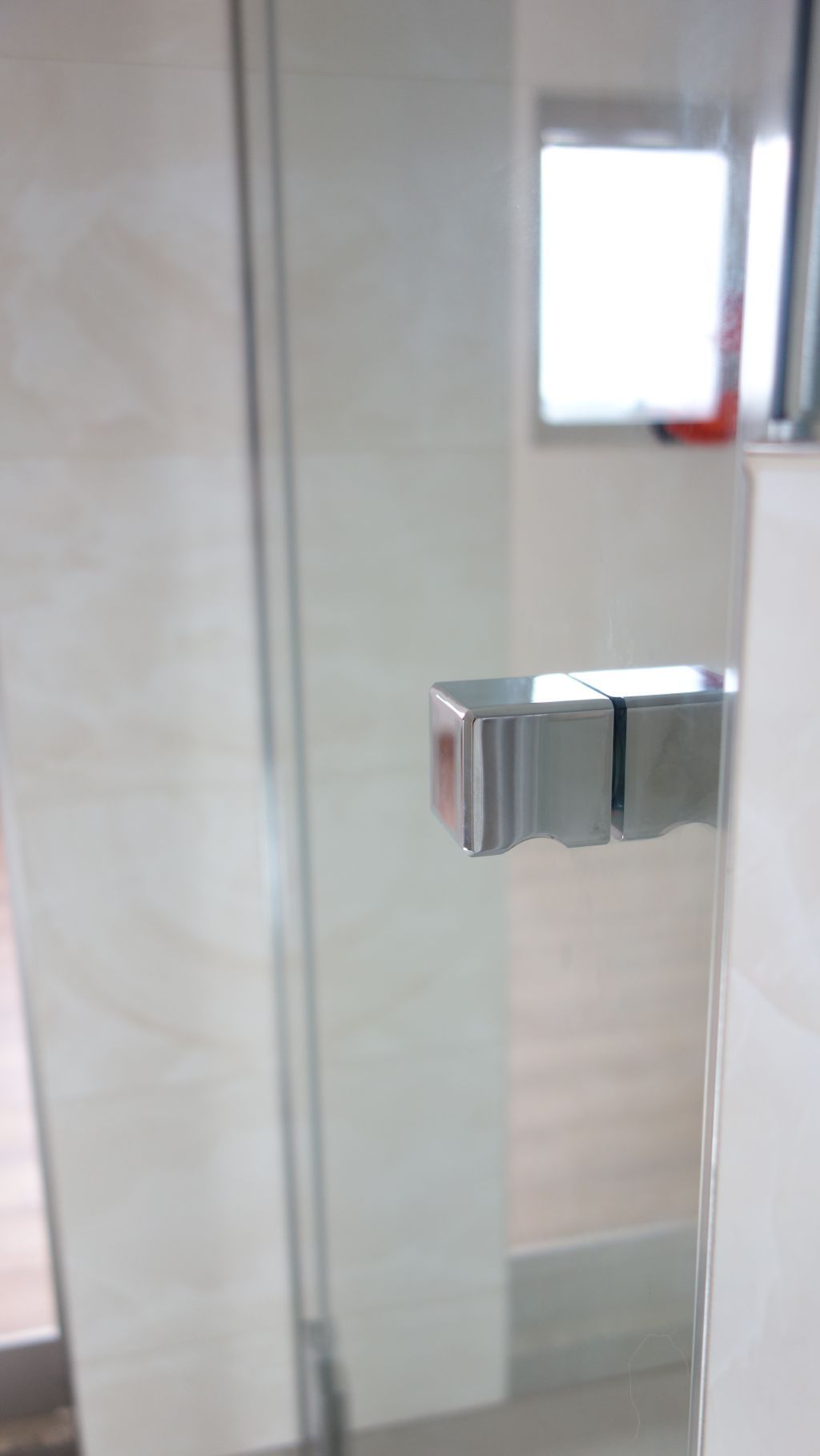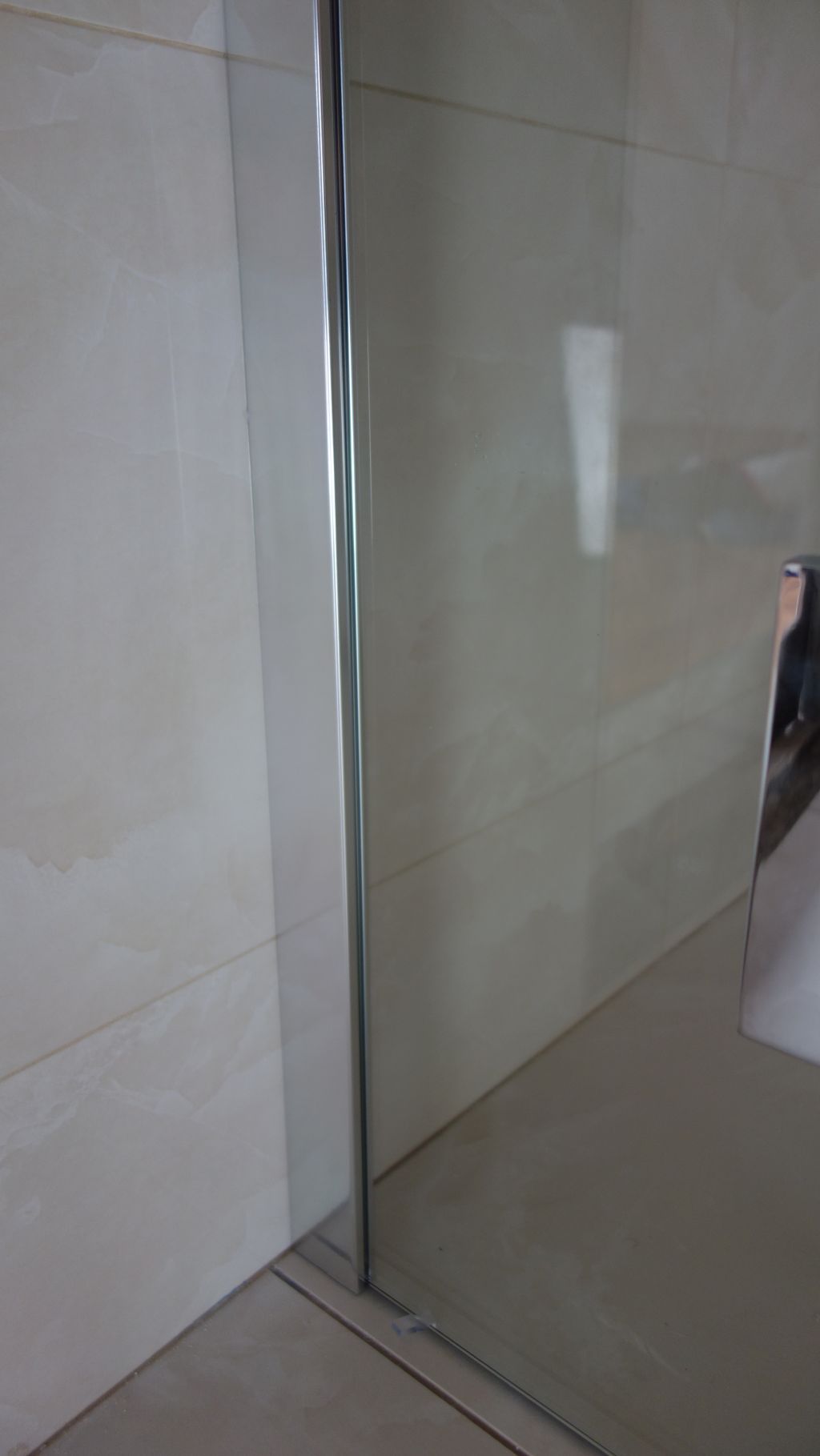 Polorámová sprchová zástěna realizovaná v Dolních Chabrech je příkladem často žádaného napojení sprchové zástěny přímo k vaně. Jeden z bočních dílů zástěny je tak zkrácen. Zajištěno je samozřejmě snadné čištění a údržba napojení k vaně. Použit je nový profil SLIM, který při instalaci zjednodušuje vyrovnání nerovností stěny. I přes štíhlý vzhled je dostatečně tuhý a stabilní. Nemusí tak být použita žádná stropní vzpěra.