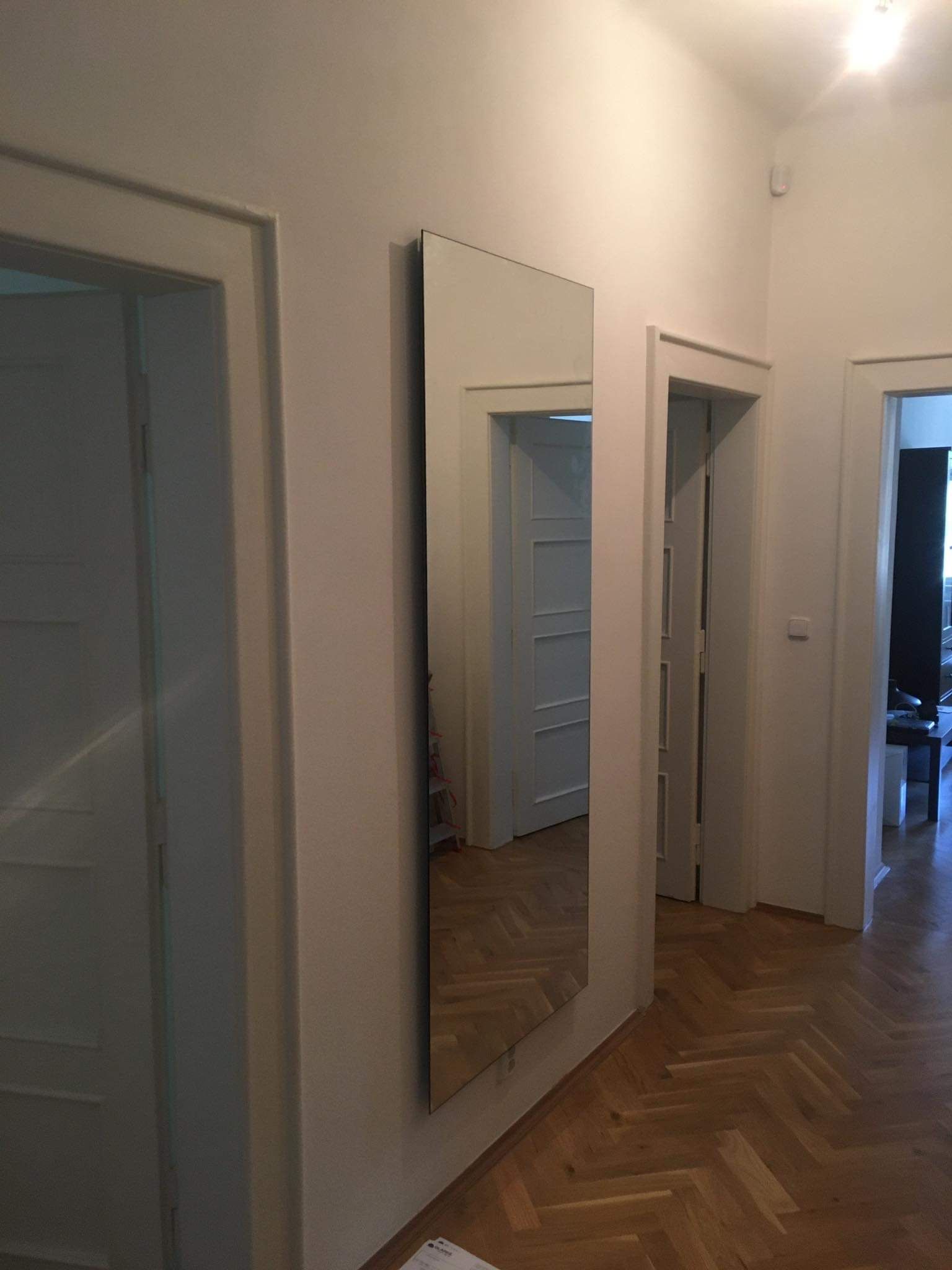 Zákazníkovi z Prahy jsme instalovali dvě zrcadla. Podsvícené zrcadlo v koupelně malý prostor prosvětlí a dodá mu na objemu. Druhé zrcadlo je umístěno v chodbě.